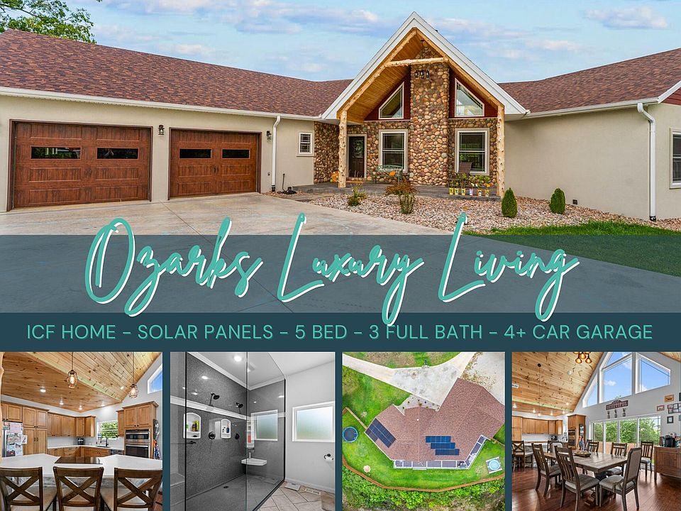 Welcome to your sanctuary in the heart of the Ozarks. Situated on 5.25 peaceful, wooded acres in the exclusive Mills Hollow gated community, this Aspen-style estate blends rustic elegance with cutting-edge energy efficiency. With over 4,650 square feet, 5 bedrooms, and 3 bathrooms, there's more than enough space to live, grow, and entertain in total comfort.Built with Insulated Concrete Forms (ICF) and foam insulation, this home was designed to reduce utility costs while maintaining consistent indoor temperatures year-round. Solar panels further enhance energy efficiency, making this home not only environmentally responsible but also a financially smart choice for long-term savings.Inside, luxurious finishes such as engineered hardwood floors and custom Onyx showers offer lasting beauty and durability. The floor plan offers space for family, guests, hobbies, or a home office--with flexibility to suit every lifestyle. Car enthusiasts, hobbyists, or large families will love the 4+ car garage, offering ample room for vehicles, tools, or recreational equipment.Located in the highly sought-after Branson School District, this property is just minutes from all local schools, Highway 65, Branson Landing, and the world-famous 76 Strip--offering quick access to dining, entertainment, and shopping, while still enjoying the privacy and tranquility of your wooded retreat.Highlights at a Glance:5 Bedrooms | 3 Bathrooms | 4,650+ Sq FtICF Construction, Foam Insulation & Solar PanelsEngineered Hardwood & Onyx Finishes4+ Car Garage with ample storage and utility5.25 Private Acres in a Gated SubdivisionConvenient to schools, shopping, and major highwaysIf you've been searching for a property that offers energy-efficient luxury, privacy, and a prime location, your search ends at 770 Mills Hollow Dr.