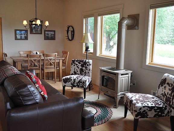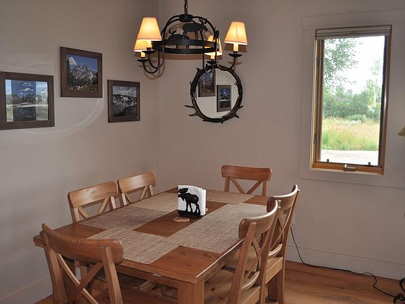 Furnished 2 BD/1.75 BA home on acreage near the airport with Teton Mountain Range views and abundant wildlife! This cute home is perfect for 1 or 2 professionals. Master Suite has a king bed, walk-in closet, large bathroom, Teton Mountain Range views 2nd bedroom has a twin over full bunk bed with Sleeping Indian views, which connects to the hall bath Open Living, Dining, and Kitchen with high ceilings Outdoor Flagstone patio w/furniture and Teton views One car garage + 1 additional outdoor parking spot New refrigerator, range, and microwave! The owner's furniture cannot be moved out. When you inquire, please tell us a bit about yourself. Includes a 1-car garage, priority snow plowing, high-speed internet, yard service, Trash, Water, Washer, and Dryer. The tenant pays for electricity and natural gas. The home is available on September 1, 2025, for a 1-year lease, with the first month, last month, and a one-month damage deposit due when signing the lease. No smoking and no pets, please. The owner's furniture can not be moved out.