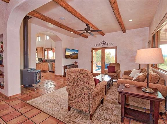 Beautifully landscaped, Santa Fe style Glade Park property on 35 acres, with BLM land to the East. Property has two houses; a main residence and a guest house (casita or mother-in-law house). Main residence includes gourmet kitchen with high end appliances, 2 master suites and office. Guest house has one bedroom, one bath and a full kitchen. Property has loads of space for relaxing and entertaining, including a wrap-around covered patio, a second level ?margarita deck? that offers spectacular views of the sunset, and a bright kitchen with huge windows so you can take in the views from inside. The house is energy efficient. Equipped with solar panels and irrigation water from the Uncompahgre Forrest, this house allows you to enjoy and conserve nature. No HOA?s.