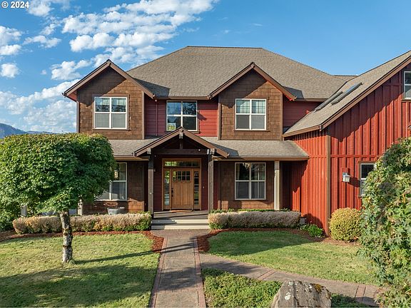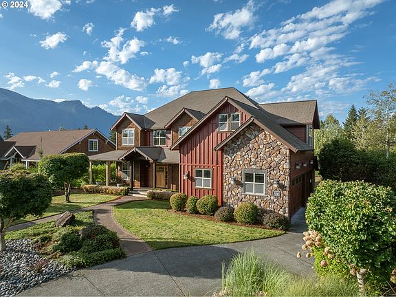 This beautifully built 2006 craftsman home in the coveted Angel Heights neighborhood offers 3,332 sq/ft of perfectly preserved living space while still giving that new home feel. Situated on one of the most secluded lots in the neighborhood, it features an oversized, level backyard with stunning views of the mountainous Gorge and a peek of the Columbia River, and sharing a property line with only one neighbor. Enjoy the scenery and views from the covered deck, hot tub, outdoor sauna, stone fire pit and sitting area, or while tending to the fully fenced raised bed garden with ample southern exposure. The meticulously landscaped front yard borders the pull-through driveway with additional parking outside the huge 2-bay, 3-car garage. Enter the home from the garage into a tiled laundry/mud room with a utility sink and separate entrance to the backyard, easily keeping the dirty pets and humans alike out of the main house. If the mess does sneak in the central vacuum is there for the win. The main floor boasts a grand living area with a floor-to-ceiling stone fireplace, giant southern-facing windows, and refurbished wood beams. The chef’s kitchen overlooks the great room and features ample custom cabinets, a built-in gas stove, double stacked ovens, on-demand hot water, and a prep island with a breakfast bar. The main floor also includes the separate dining room, a library/office and a powder room for guests. Upstairs, the family can spread out in 4 bedrooms, including 2 with ensuites and 2 with a shared bathroom, plus a giant media room that could be perfect for an in-home gym. The primary bedroom features a walk-in closet with two separate entries and a private balcony with even more grandiose views than from below, plus the ensuite featuring a tile walk-in shower with river stone floor along with a jetted tub. This type of full package home is rare to hit the market in the gorge... Schedule your showing today!