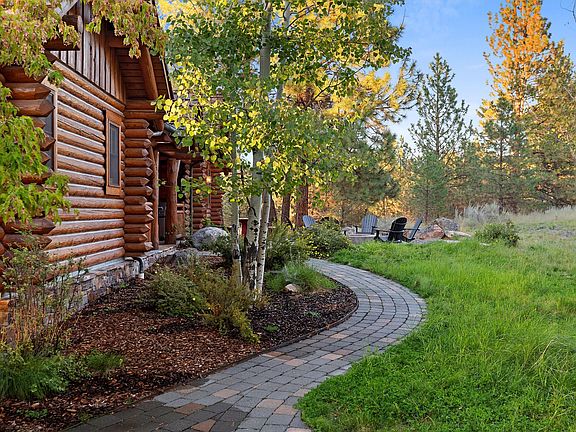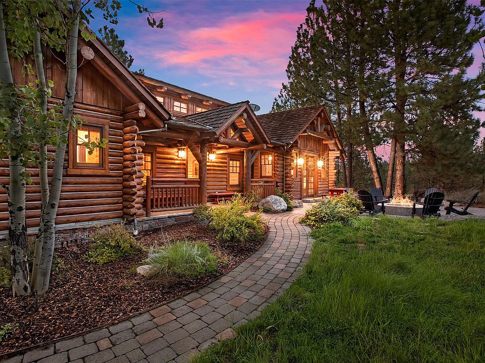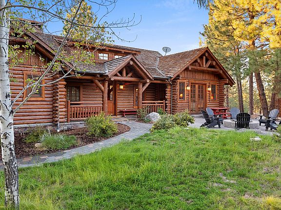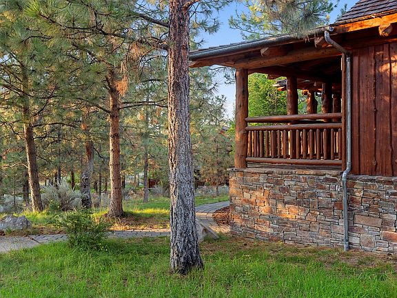 Beautiful custom log home located in the prestigious Bitterroot Valley Stock Farm Club. This home is nestled perfectly on .8 acres of manicured wooded land. Enjoy the best this Montana lifestyle has to offer with 4 bedrooms, 4 1/2 bathrooms and panoramic views of the Bitterroot mountain range. Custom features include an open concept living room with massive stone wood burning fireplace, custom woodwork, and a large primary suite on the main level. There are two floors perfect for separate private living areas. Numerous decks and balconies overlook the expansive Stock Farm common area and outdoor fire pit. An abundance of wildlife frequent the area and there is an abundance of beautiful native vegetation. The Stock Farm Club House features a gourmet dining experience and is located just a short golf cart drive away as well as a spa, gym and the famous Tom Fazio designed golf course. Stock Farm membership is not included with the offering. This cabin is part of the rental pool.