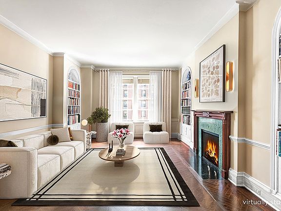 This grand and sophisticated duplex residence is located in the esteemed Rosario Candela-designed building at 770 Park Avenue in the heart of the Upper East Side. The apartment boasts a gracious layout with superb prewar details throughout. The entertaining rooms and three of the four bedrooms have an eastern exposure overlooking Park Avenue. Upon entering, you are greeted by an impressive entrance gallery with a sweeping curved staircase. The dramatic 30-foot living room with a wood-burning fireplace is sun-flooded through floor-to-ceiling windows with Juliet balconies. It is adjacent to the library with its own wood-burning fireplace and handsome built-in bookcases. The beautifully proportioned corner formal dining room is ideal for entertaining. The windowed gourmet eat-in kitchen offers custom cabinetry, ample countertops, two Subzero refrigerators, Viking 6-burner range, an additional oven, two sinks, two dishwashers and an icemaker. A staff room with full bath is conveniently located off the kitchen, as is a windowed laundry room that leads to the secondary staircase.