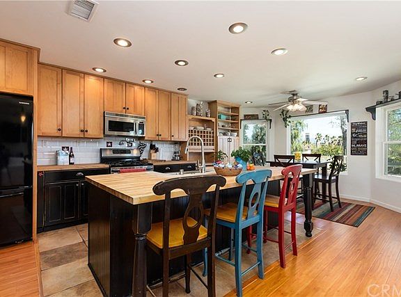~THIS HOME DOES NOT DISAPPOINT! The white picket fence and arbor-accented paver walk way sets the tone for this charming Fallbrook home. Inside, a stone accented fireplace is the focal point of the front room and is accented by wood laminate flooring, an abundance of natural light, and views of the tree lined front yard. The entertainers kitchen is highlighted by stainless steel appliances, butcher block countertops, tile flooring, and a large kitchen island opening to the dining nook and overlooking the spacious family room featuring a stone fireplace and French Doors leading to the spacious deck. This is the perfect yard for entertaining offering a deck spanning the length of the home and opening to the sprawling backyard. The main floor additionally offers a downstairs office with two built-in desks and storage space (Possible 4th bedroom), a ¾ bathroom, and a spacious laundry room with a mop sink and single door access to the breezeway. The oversized 2-car garage offers additional space that can be used for storage or a workshop. The second floor of the home offers a secondary room, a secondary bathroom with a single vanity, and a shower/tub combination, and the stunning master suite with high ceilings, French Doors leading to a spacious balcony, a stone appointed fireplace, and Master Bathroom featuring black & white tile flooring, a large walk-in closet, dual vanities, a Jacuzzi tub, and a separate walk-in shower. Don't miss this one!