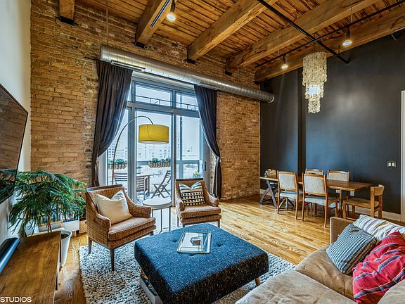 Stunning east-facing 2BR/2BA loft with dual balconies in prime West Loop/Greektown location. Spacious authentic loft features soaring timber ceilings, exposed brick walls, and industrial ducts creating true urban loft atmosphere. Large floor-to-ceiling windows flood space with natural light while expansive living room balcony offers unobstructed city skyline views. Completely renovated modern kitchen boasts sleek cabinetry, sleek countertops, space-efficient design with built-in features, and brand-new high-quality stainless steel appliances. Adjacent charming wallpapered nook perfect for bar cart or home office. Spacious primary bedroom features floor-to-ceiling windows, private balcony access, dedicated workspace area, enormous organized walk-in closet, and fully renovated attached bathroom with luxurious marble walk-in shower and large vanity. Second bedroom fully enclosed with professionally completed glass ceiling extension providing complete privacy while preserving natural light flow - unique feature in building. Guest bathroom includes tub/shower combo. In-unit washer/dryer installed 2024. Building amenities include recently renovated exercise room with air-purification system and additional storage cage. Exterior parking space in adjacent lot available for an extra $225/month. Steps from Michelin-starred restaurants, boutique shopping, Whole Foods, Mariano's, and Mary Bartelme Park. Easy access to highways, Metra, CTA Blue line, and UIC Medical District. Rent includes water, high-speed fiber-optic internet, cooking gas, heat, snow removal, and parking. Tenant pays electric. Seeking responsible tenants with previous landlord references. No pets. Available 10/15/2025, with some flexibility. 10 or 11-month lease preferred to get back on a traditional rental cycle.
