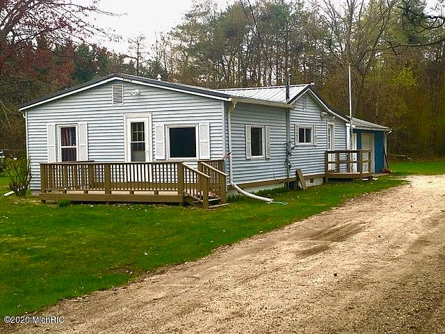 A very nice and well kept home in Sullivan Township / Ravenna Schools. This 2 bedroom, 1 bath simple ranch home on nearly 2 acres comes well equipped with washer & dryer, fridge & microwave. The steel roof is only one year old and the central air is newer as well. It has beautiful front and side decks to enjoy your peaceful outdoor privacy...both recently stained. A nice sized 24x24 pole barn style garage to store your cars or toys. The rear half of your property is completely wooded to hang that deer stand or maybe just for a nature walk. Across the street you will find the 26 mile long Musketawa Trail to walk, bike, or snowmobile on! You will just love how everything is on one floor - no stairs, no basement...Nice! And Priced to Sell! Tour it today.