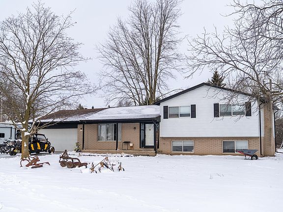 Welcome to your private escape in Bruce Township! This beautifully updated 4-bedroom, 2-bath tri-level sits on 1.9 serene acres with a 52×30 steel barn, circle driveway, and gorgeous views in every direction. Located in highly sought-after Romeo Schools, this home blends modern updates with country living just minutes from town. Step inside to a bright, welcoming layout with 2,100 sq ft of living space, featuring fresh paint, stylish accents, and large windows that fill the home with natural light. The spacious living room flows into an open dining/kitchen area with white cabinetry, stone counters, stainless steel appliances, subway-tile backsplash, and a generous island perfect for meal prep and entertaining. Upstairs you’ll find 3 comfortable bedrooms and a beautifully remodeled full bathroom with dual sinks, modern mirrors, and upgraded fixtures. The lower level offers a second living area, laundry, 4th bedroom, and a finished flex space with wet bar, counter, sink, and mini-fridge—ideal for a kids’ hangout, office, gym, or entertainment zone. There is also a strong possibility of natural gas coming to this area in 2026, offering future efficiency and upgrade potential. Outside, enjoy the peaceful setting with your 2-car insulated attached garage, and a massive steel barn perfect for storage, hobbies, equipment, animals, or a workshop. The property is set well back from the road, offering privacy, quiet living, and beautiful sunrise/sunset views.