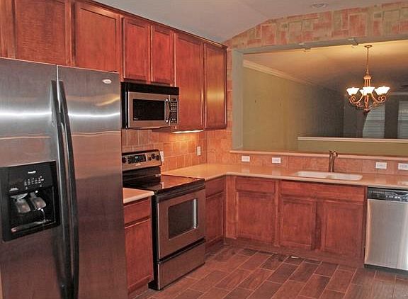 Formal model home ready for you!! Beautiful one story w/wood looking hard tile throughout the kitchen, dining, living room and halls. This remarkable home has four bedrooms, 2 bathrooms and a finished garage!! You will be a short distance from the community pool to enjoy the hot summer days!! Refrigerator and drapes are included so you can move your personal belongings in and begin living in your precious new residence!! Close to I35 & HWY 195 Owner will ONLY ALLOW 2 DOGS LESS THAN 35 POUNDS; NO CATS!