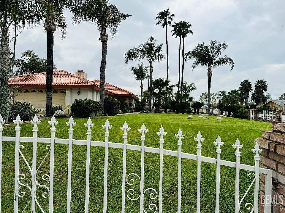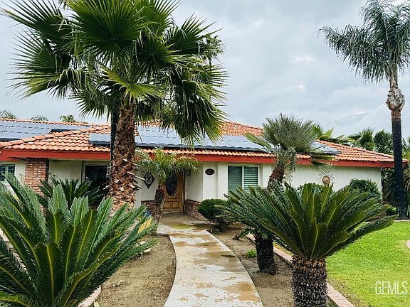 This stunning home, well maintained property located in a Bakersfield quiet community is perfect for you if you're looking to a relax California lifestyle in a prime neighborhood. Large home with four bedrooms, two bathrooms and one outdoor bathroom for your outdoor barbecue parties during the Summer. This home has many upgrades to artistically inspired your daily living. Leased solar, laminated wood flooring, newer water heater, AC unit installed in 2019. Very large and spacious front yard decorated with beautiful palm trees all around the property. large back yard with patio and outdoor kitchen and bathroom. Plenty of yard space for a pool. Property fenced with block wall from corner to corner with wrought iron gates. RV parking. Attached vacant lot for several possible alternatives. You can legally park one heavy duty truck in this vacant lot. Approximately one acre of vacant lot. RV parking. A must-see!