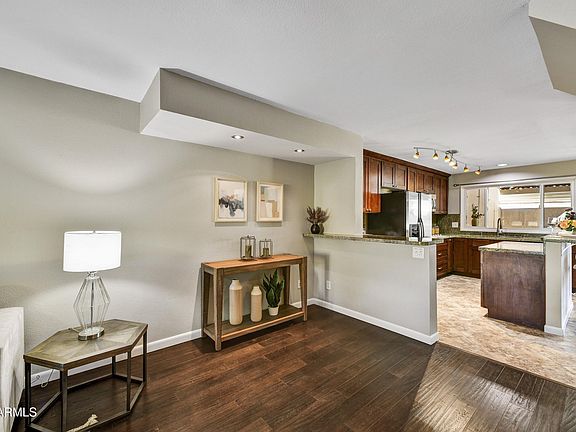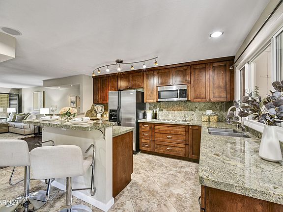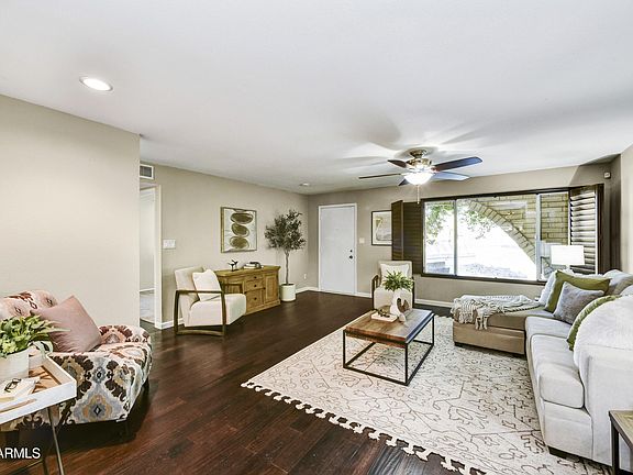 Desirable 3 bedroom, 2 bath end unit overlooking greenbelt and El Dorado Pond. Updated kitchen features granite countertops, walnut look cabinets, chic track lighting, breakfast nook and center island. Spacious patio for outdoor dining w/open tree lined patio adjacent to park. Great w/room wood look flooring and flex space for media corner or dining. Convenient Scottsdale location close to Old Town, restaurants, Scottsdale Stadium, entertainment centers.