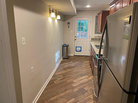 One bedroom, one bath apartment in the lower level of a split level house. Completely cut off from the upper levels. Separate entrance. Washer and dryer included in the unit with a full kitchen. Fenced backyard is shared. No smokers. Close to everything but very private, house backs on to a park. Close to 495 and an easy spot from which to commute. One month security deposit due at signing.