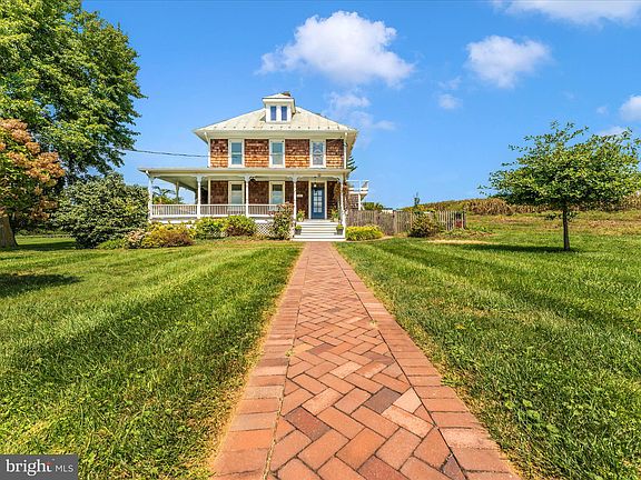 Enjoy country life in this handsome 1920s classic Foursquare farmhouse on nearly 2 acres of open land with mature trees and gardens. Step up to the wide, welcoming wrap-around Front Porch with ample space to hang your hammock and relax with friends on a summer’s day. Turn the antique doorbell on the front door and step into the Foyer featuring the main staircase with its original newel post and banister. Inside are the period details you would hope to find: original pine floors and trim throughout, solid 6-panel doors with transoms, high ceilings and abundant light from large windows in every room. Off the Foyer the Living Room has custom built-in bookshelves and cushioned window seats with storage. French doors open to the Dining Room with built-in shelving, a tray ceiling and recessed lighting. To the left, a cheery Sunroom leads to a full Bath. The Kitchen features a darling, old-style step-in pantry, original built-in hutch and table space – plus a fun enclosed back staircase to the second floor! Off the Kitchen a bright, sunny Laundry/Mudroom leads outdoors to a fenced-in area, garden, two Outbuildings and the charming two-story Studio/Workshop with electric service & propane gas heater. The second floor features a spacious full modern Bath, three Bedrooms (one with private half Bath) roomy closets and a Porch overlooking farm fields. The finished third floor has sloped ceilings with dormer windows and a skylight allowing this huge Flex Space to be anything you want. This home is move-in ready and has been well-loved and maintained by the current owner for over 20 years. The many upgrades and improvements include: new porch roof, cedar shake siding, full electrical upgrade, generator hookup, alarm system and landscaping. Situated perfectly between historic downtown Frederick and quaint Middletown it features the best of country living close to culture, a blue-ribbon school district, restaurants and shopping. A very special home in a great location awaits its new owners!