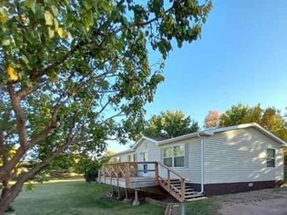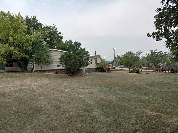 Presented by David Wilson and Jeff Levi, Sturgis Real Estate & Auctions: (605) 347-7579. Peaceful seclusion. This .96 acre parcel of land provides plenty of room for your dreams and family to grow. Offering unobstructed views of morning sun rises to the East and mature trees shading on the West. A rustic wood privacy fence reinforces the country-living feel, even though you're less than ¼ mile from the nearest grocery store. The 3 bed 2 bath manufactured features: a kitchen designed to be the heart of this home with ample storage, counter space and island, a living room fireplace, and an open floor plan. Primary bedroom and bath feature a larger floor plan with a walk-in closet. Primary bath is 8'x12' with 2 sinks, shower and a bathtub. Two large decks (10x20' front, 10x40' rear) provide plenty of space to enjoy the outdoors and entertaining. Out buildings include a single stall garage with designated shop area and a garden shed. There’s an established garden area, which is another ideal excuse to be outside enjoying the beautiful surrounding Black Hills views.