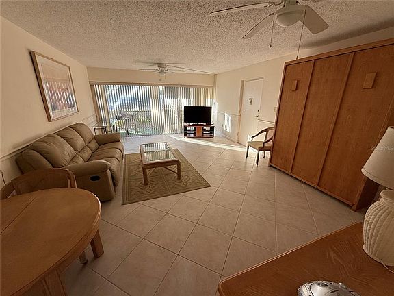 FURNISHED GROUND FLOOR STUDIO UNIT. Move right in. Recently replaced Electric panel, refrigerator and kitchen cabinets. Furnishings include Murphy Bed, sofa, tables and chairs, TV and Microwave. Screened front porch provide true Florida lifestyle. This unit's parking space is conveniently located right in front of the unit. Just steps away from the complex clubhouse, pool and lots of outdoor activities. Economic living at a GREAT VALUE!
