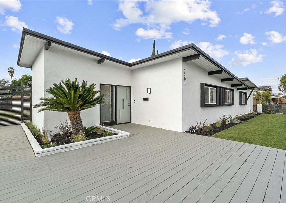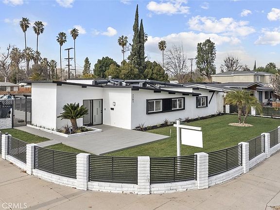 Incredible and modern, fully remodeled single-story home stretch across a huge corner in sought-after Reseda! The fully gated exterior guards a beautifully manicured front yard and sun-washed deck detailed by wispy greenery. An ode to the 50’s with three rectangular inset windows stylizing the front door that opens into a bright and welcoming living space featuring high beamed ceilings, a mix of recessed light and artistic light fixtures, and laminate flooring throughout the spacious 1,600-sqft floor plan. Entertain with ease from the airy living and dining room or curl up by a roaring fire in the marvelous family room complete with a raised hearth fireplace incased in the modern decadence of a black rock feature wall. The galley style kitchen has trendy details of grey shaker cabinetry, glossy granite countertops, and built-in stainless-steel appliances. Adjacent to the kitchen is the indoor laundry room with additional storage cabinets. Each spectacular bedroom is enhanced by built-in closet storage and awashed in sunshine from the large windows while center ceiling fans keep each room at a comfortable temperature. Of the three bedrooms, the large primary bedroom has the exclusive benefit of an attached private bathroom featuring fresh glittering tilework, a spotless sink vanity with storage, and a rimless glass walk-in shower. Venture out the enclosed back patio as undiluted sunshine streams through the expansive windows and creates a soothing ambiance to enjoy while lounging or entertaining guests. The rear of the property provides a beautifully landscaped private yard, an open parking area, and an oversized carport perfect for your RV. This property also includes a bonus room perfect for home office or gym. This corner lot offers the potential for ADU and a lot of perfect for investment or owner occupied with rental possibilities. An excellent location just across the street from Albertsons and nearby Cleveland High, Northridge Fashion Center, CSUN, Pierce College, the Warner Center, local restaurants, shops, entertainment, and so much more!