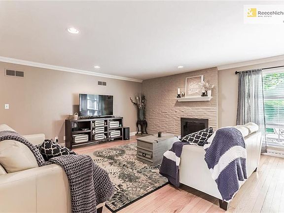 Perfect in Prairie Village! Catch this adorable ranch before it's gone! Spacious chef's kitchen w/ granite countertops, tile floors, designer dual oven, pantry & stainless appliances, sunny breakfast room & formal dining room, shiny hardwood floors throughout, crown molding, NEW A/C 2018, main floor master bedroom & secondary bedrooms, finished basement includes wet bar & rec room/tv room, all kitch.appl stay, wash/dryer stay, two-car driveway, private patio in backyard, choice corner culdesac lot in heart of PV!
