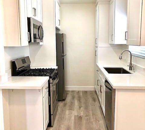 NEW NEW, Please read entire ad! Extensive remodeled upper bright 2 bedroom 1 bath apt. with new vinyl planked flooring, large deep guest closet at entrance, open floor plan with flat ceilings with new LED dimmable recessed lights, custom window treatments, new kitchen with shaker cabinets, Carrera quartz counters with bar eat-in area, stainless sink, new faucets throughout, new stainless steel appliances include Refrig, stove, dishwasher and microwave with window above sink. Hallway has recessed lights with ample linen / storage. Bathroom has new shaker vanity with quartz counters, tub / shower combo with new subway tiled shower walls, both bedrooms have new lighted ceiling fans, new mirrored closets with new custom closet organizers and new carpet, new baseboards, new two tone paint, new elect, new lights, new locks, brushed nickel finishes, 1 private garage parking space and ample street parking all around for your guests. Small access controlled bldg w courtyard and laundry facilities, stroll to the beach, parks, shops, markets, banks, Silicon Beach, Playa Vista, Marina del Rey, El Segundo, LAX, LMU, Otis, Westchester Golf course, freeways, theater and restaurants etc. Sorry no animals. To protect you from scams we do not accept text or emails, so please call between 9-6 to discuss viewing. We seek long-term tenants 15 + months. $2,195. Month. Owner pays water, maint. gardening etc.