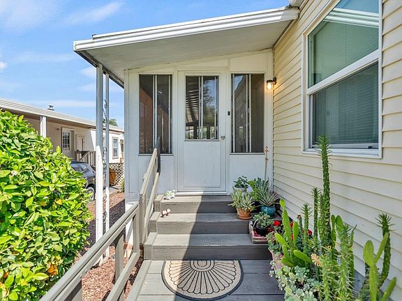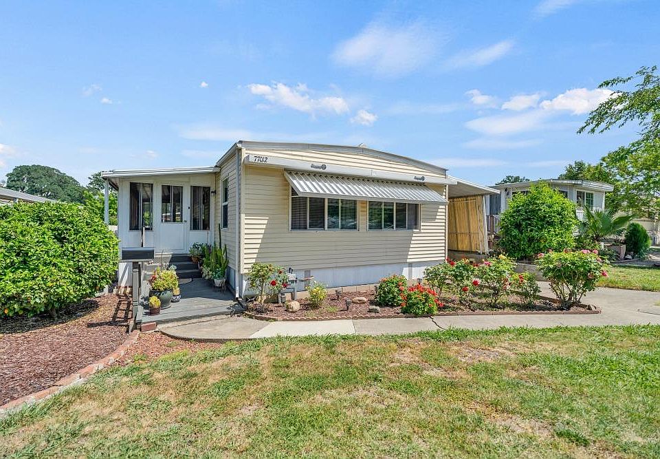 Welcome home to this beautifully updated 2-bedroom, 2-bathroom mobile home, perfectly situated at the front of the park for added convenience curb, appeal and its own private driveway for extra parking and accessibility. THE SELLER WILL CONSIDER ALL OFFERS. Featuring an open floor plan and a spacious, sun-filled layout, this home offers a seamless flow between living, dining, and kitchen areas ideal for everyday living and entertaining. Enjoy cooking in the open kitchen, unwind in the cozy sunroom, or step outside to relax on the inviting patio space. Additional highlights include a private driveway, a covered garage space, front lawn maintained by the community, and tasteful updates throughout making this home truly move-in ready. Don't miss your chance to own this charming, low-maintenance gem. Whether you're starting out or downsizing, this one checks all the boxes. WELCOME HOME!!