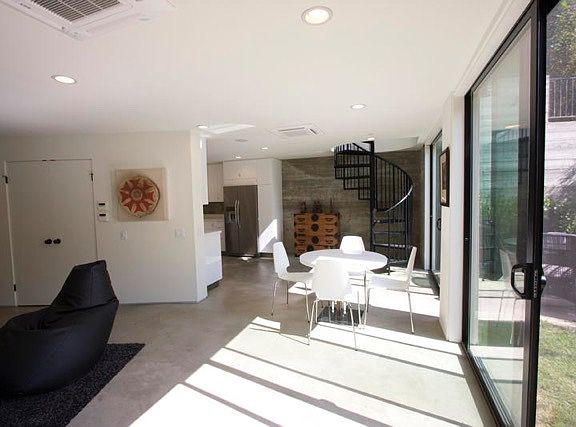Exposed concrete walls. Great light