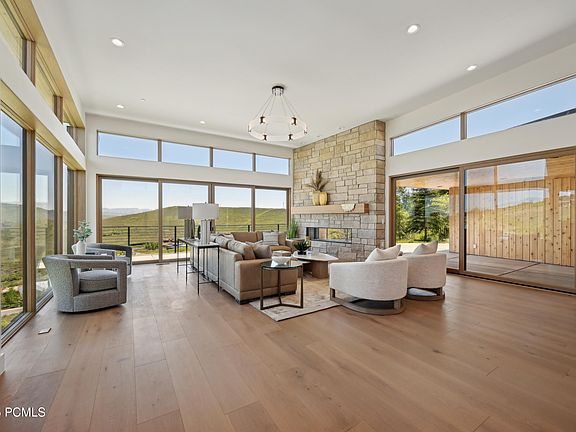 Experience luxury in this remarkable modern new build designed by Klima Architecture, situated in the Aspen Camp neighborhood of the Promontory community with full Golf Membership available. Epitomizing style, functionality, and comfort, this home features impeccable craftsmanship, exceptional amenities, and main-level living convenience. From the moment you enter, you'll be captivated by the open, spacious layout that exudes warmth and elegance.