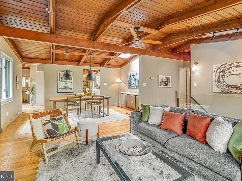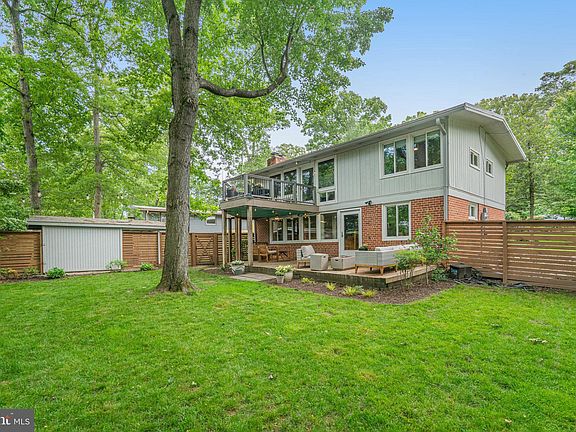 OPEN HOUSES CANCELED - offer accepted! Nestled on a quiet, tree lined cul-de-sac in the sought after mid-century modern neighborhood of Holmes Run Acres, this thoughtfully updated and expanded Luria model offers 4 bedrooms and 2.5 beautifully renovated bathrooms across two spacious levels. Soaring wood-clad cathedral ceilings, hardwood floors, and an abundance of oversized windows and skylights create a bright, airy atmosphere while showcasing views of the multiple outdoor living spaces and the private, fully fenced backyard. Enter through a roomy foyer, with large entry closet and beautifully updated half bath, to the open-concept living and dining area featuring a brick fireplace, custom built-in bar, and direct access to a large second-story deck, perfect for entertaining or relaxing among the treetops. The updated kitchen flows seamlessly from the dining space, boasting stainless steel appliances, custom cabinetry, and generous counter space. Just beyond, a bright family room is filled with numerous large windows and skylights, creating the ideal spot to unwind. This level also includes two bedrooms, and an expanded and updated full bath. The lower level offers two additional bedrooms, another well appointed full bathroom, a second wood burning fireplace, the laundry/utility room, and ample storage. A glass door leads to the expansive, partially covered patio that extends your living space outdoors. A large storage shed sits just beyond the fenced yard, offering even more utility. The current owners have invested over $60,000 in thoughtful upgrades, including kitchen and bath renovations, HVAC replacement, deck expansion, fencing, and numerous aesthetic enhancements. The roof was replaced in 2017, and the electrical panel upgraded in 2008, by the previous owners. Ideally located, this home offers convenient access to major commuting routes and is just minutes from Luria Park, Holmes Run Pool, local schools, hiking trails, and the vibrant Mosaic District with its weekly farmers market. Holmes Run Acres is known for its strong sense of community and active civic association, which hosts events like a Halloween parade, Pride party, and home & garden tour. Don’t miss your chance to make this beautiful home your own, and become part of this unique and welcoming neighborhood. Schedule your showing today!
