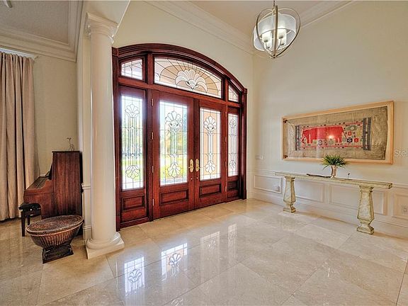 Imagine... tree lined drives, beautiful sprawling estates, family traditions and the charm and ambiance of a long standing Sarasota luxury neighborhood that is the crown jewel of the 34240 zip code. From the moment you pull up in your circle driveway and walk through the grand mahogany and cut-crystal front entry doors you'll immediately feel welcomed. The sparkling floors and open living spaces will catch your eye, exuding a sense of grandeur and class. The detailing is extensive throughout the residence and includes majestic crown molding and the finest quality materials. The kitchen boasts gorgeous Cherry wood cabinets throughout, all Viking appliances with 2 ovens, 2 dishwashers, granite counters, island, vegetable sink and spacious entertaining area with wine rack and wet bar buffet. Fireplaces in both the living room and family room add warmth and coziness. Open up the French doors and let the outside in while luxuriating on your pristine Mediterranean-tiled patio with salt-water heated pool and spa, outdoor kitchen and multiple entertaining areas. 6 bedrooms and 5.5 baths, a billiard room, laundry rooms, office with built-ins, 3-car garage, and ¾ Acre fully landscaped lot completes the dream. Laurel Oak Estates and Country Club is a premier community comprised of 813 acres, 405 homes, 24 hour manned entry gates and on-site management. Country Club memberships are optional, club features 2 championship golf courses, golf shop, 12 tennis and pickleball courts and a jr. olympic size pool. Club house has year round fabulous dining and social activities for the whole family.