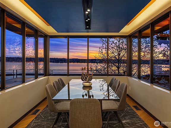 Olson Kundig design set upon the shores of Lake Washington. Light finds you in every space & the views are inescapable in your modern jewel-box home of glass, steel, wood & concrete, artfully reimagined by world renowned architect, Jim Olson, in 2008. Mt Rainier & the Olympics are your backdrop for all-day sun along 65' of coveted West-facing Mercer Island waterfront with new dock in 2017 & boat lift. Enter near waters edge to vaulted gathering spaces with seamless indoor/outdoor flow for social nights by the lake, quiet & intimate zones for retreat & relaxation, primary suite & two additional bedrooms share their own floor centered around a communal family room hub, & lakeside-level entertaining room with additional bedroom & 3/4 bathroom.