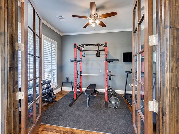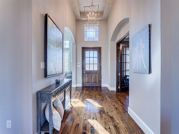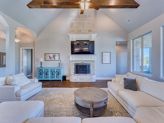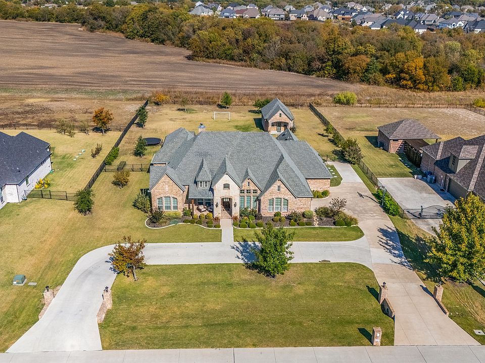 This beautifully designed one-story home offers 4 bedrooms, 3.5 baths, plus a 600 sq ft detached suite with full bath and kitchenette, perfect as a 5th bedroom, in-law suite, or private office. Inside, you'll find hand-scraped hardwood floors, ceiling beams, and a custom wood accent wall and plantation shutters through out that add warmth and character. The open kitchen is a showstopper with a large island, double ovens, and plenty of workspace, flowing effortlessly into spacious living and dining areas with large windows overlooking the backyard. There's also a dedicated office, formal dining room, and a flexible game or media room perfect for entertaining. The primary suite is tucked away for privacy, while secondary bedrooms include a Jack-and-Jill bath and a private ensuite. Step outside to a backyard built for Texas living: covered porch, full outdoor kitchen, dining area, pool with waterfall feature, and cozy fire pit. Home also includes a 3-car attached epoxy floor garage and EV charging station. Set in desirable Parker, TX, this home combines country calm with easy access to city conveniences.