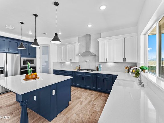 OWNER's suite w/ WIC + luxurious BATH, features a double vanity, sunken shower & free-standing tub. Dedicated utility room w/ convenient space for laundry & storage. Covered patio & porch, ideal for outdoor relaxation & entertaining. White & gray exterior with board & batten siding, large windows + pitched roof. 10FT+ ceiling heights provide an open and airy feel throughout the home. QUARTZ countertops included in the large kitchen island w/ high-end appliances that include a 36'' gas cooktop, pot filler & built-in microwave/oven combo; SOFT-CLOSE feature included. Fireplace in the living room adds warmth & ambiance. Tankless water heater & water softener prep, energy-efficient solutions for modern living. Double garage w/ 16FTx8FT overhead door with automatic opener included. A blend of modern & rustic farmhouse aesthetics. A move-in-ready home w/ high-end finishes & quality craftsmanship. The LAGOS offers a balance of modern elegance, practical functionality & high-end finishes, making it a standout at Red Hawk Estates! Ready to start your dream home journey in New Mexico? Please call us to schedule your tour today!