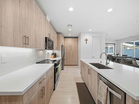 Welcome to 7704 Jasmine Court, a beautifully upgraded 2023 built upscale townhome in Santee’s desirable All-electric Laurel Heights community. This stunning 3 bedroom, 2.5 bath home offers 1,746 sq. ft. of bright, modern living space designed for comfort and style. Step inside to discover high quality waterproof wood vinyl flooring throughout and an open, airy floor plan filled with natural light. The chef inspired kitchen features sleek quartz countertops, a designer backsplash, stainless steel appliances, and a spacious island perfect for gathering and entertaining. Upstairs, you’ll find a versatile loft area ideal for a TV room, office, or play space. Enjoy the convenience of an attached 2-car garage and a private, low-maintenance backyard upgraded with turf making it perfect for relaxing or hosting family and friends. Other features include Paid Solar, EV car charging port in garage and just down the road a community area with a playground and a large pool and spa, perfect to refresh on hot summer days. Located in a quiet, newer community, this home offers easy access to parks, scenic trails, shopping, and freeways 125 and 52, making it the perfect blend of peaceful living and everyday convenience. Priced to sell quickly, this is one of the best values in Laurel Heights. Don’t miss the opportunity to make this move-in ready gem, your new home!