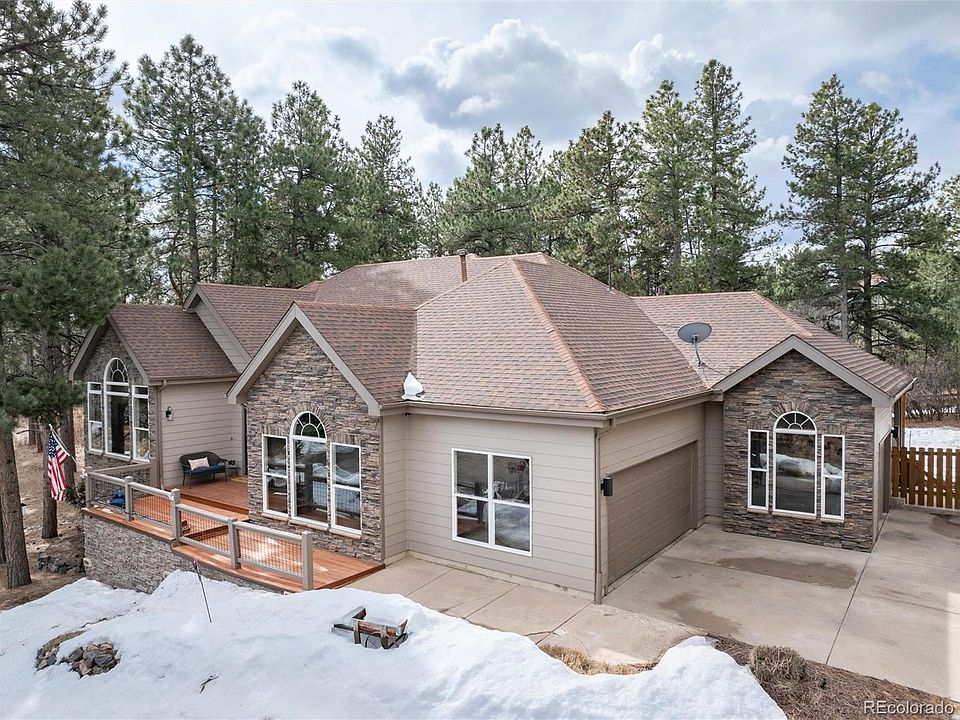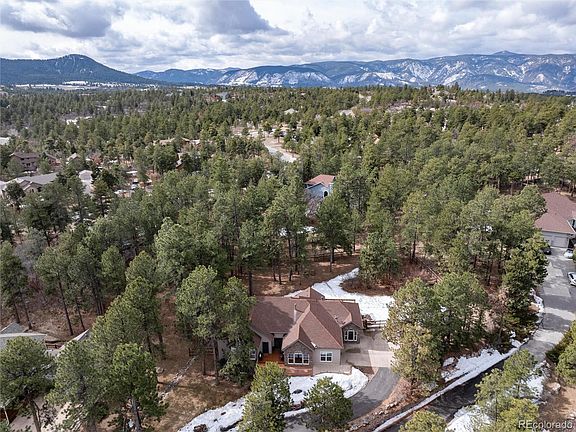 Remarkable Custom DREAM HOME in the coveted Bear Dance / Sageport area!  Situated on just shy of an acre lot at the end of the cul-de-sac, this property offers breathtaking wooded pines and ample privacy along with stunning sunset views of the Butte. This ranch home with a full walk out basement offers just shy of 4,000 total sq ft. of living space. Remodeled open concept in 2021 to provide the perfect environment for entertaining. The kitchen boasts a large island, quartz and granite countertops, knotty alder solid wood cabinets with soft close, KitchenAid stove top and double ovens, a built-in buffet with a coffee station and beverage fridge, and a spacious rear pantry. The Great room consists of a vaulted ceiling with oversized slider leading out to your private hot tub and trex deck and most windows and doors on the main level are new in 2021. Oversized  3-car garage useful mudroom with sink is the perfect drop zone for all your gear.  Main level boasts an open dining area with French doors leading to the front deck offering views of the butte.  The laundry is centrally located, with additional flex room offering office space or reading area.  The primary retreat offers a spa-like bath featuring a soaking tub, tile shower, dual vanity, and large walk-in closet.  The walk-out basement consists of 2 additional bedrooms with on-suite baths, an oversized family room with wet bar including mini fridge, wine fridge, dishwasher, and convection microwave complete the basement. New carpet throughout, tile and wood flooring, as well as fresh paint on the interior and exterior. Outside features level parking spot for RV, multi-zone watering systems for landscaped yard and spacious raised bed garden.  Golf Club at Bear Dance and Perry Park Country Club, are a short drive as well as amazing parks, hiking trails, and so much more!