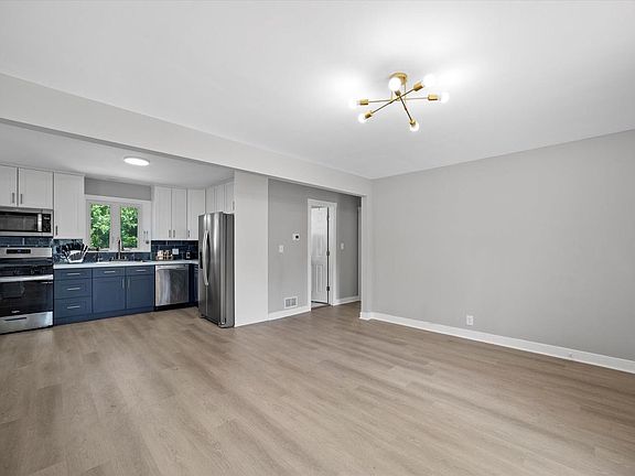 Most everything only one year NEW! Beautiful kitchen with quartz counters, subway tile, stainless appliances and stylish two-tone shaker recessed panel cabinets. Expansive counters include a large breakfast bar that accommodates 4+ stools, and the window above the sink allows a beautiful view of the large tree-lined lot that is within walking distance of lake access (Paddock & Hooker), fishing, boating, a park and a dog park. New roof, gutters, siding, soffit & fascia, hot water heater, water softener, dehumidifier, and huge deck. Only a relocation bring this home to the market - don't miss your opportunity!