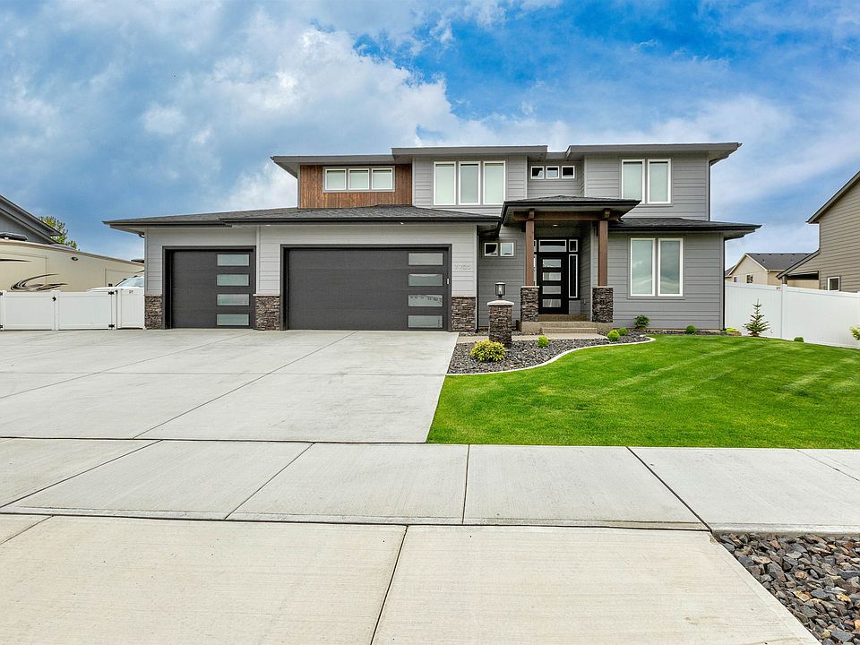 Stunning DSC 2019 Home Show Fan Favorite! Absolutely Turn-key with everything you could possibly want, this home will surely check all the boxes! Over 3800+ sq ft, contemp. design w/5 bedrooms, 3.5 bathrooms, feat. a granite kitchen w/stainless steel backsplash, mixed metal fixtures, walk-in pantry, huge kitchen island & eating bar, great for entertaining & gatherings. Great room concept floor plan w/soaring ceilings, view-from-the-top staircase w/custom metal railing and living room view, loft area w/reading nook. Floor-to-ceiling stone gas fireplace, upgraded custom lighting package, hardwood flrs, formal dining room, mud room, fin. & insulated 3+ car garage w/home office & separate entrance ideal for working from home. Main suite w/walk-in closet, barn door bathroom w/double vanity, mud-set tile shower you have to see to believe, and stand-alone soaking. Full finished basement w/2 guest rooms, full bath, & rec room. Fully landscaped, covered patio, RV parking & cvrd hot tub! Mead Schools, Sky Prairie Park!