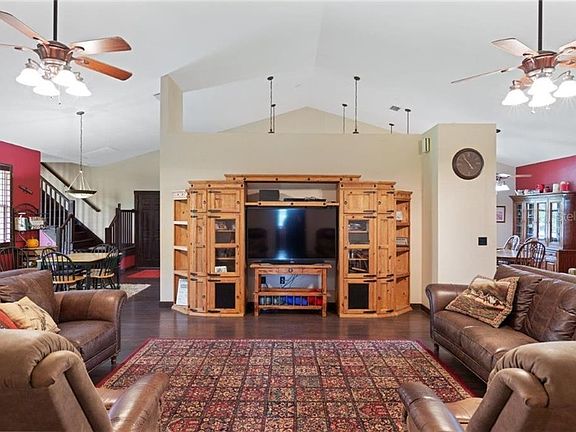 - Interior Features: Eating Space In Kitchen, High Ceiling(s), Master Bedroom Downstairs, Open Floorplan, Walk-In Closet(s), Solid Wood Cabinets, Thermostat, Living Room/Dining Room Combo, Solid Surface Counters, Window Treatments, Vaulted Ceiling(s)
