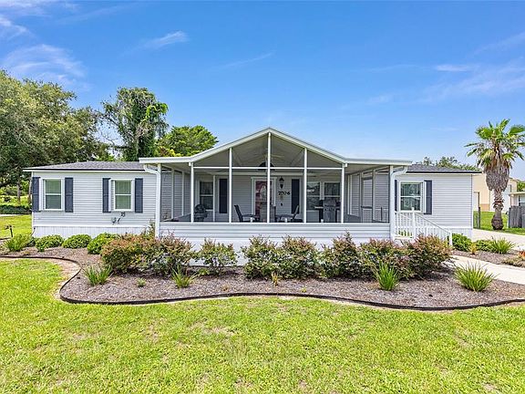 Welcome to this spacious 3-bedroom, 2-bathroom golf-course view home boasting 2,128 sq ft of comfortable living space, nestled in the peaceful and golf-cart friendly Oakland Hills community—with NO HOA! Situated on a private, oversized ½-acre lot, this property offers serenity, space, and convenience just minutes from shopping, dining, and medical facilities. Step inside to discover a bright, open floor plan featuring a large living room with a brick wood-burning fireplace, a formal dining area, and a well-equipped kitchen with a center island, endless cabinetry, and a newer stainless steel refrigerator. Enjoy the outdoors from two screened lanais—one in the front and one in the rear, which includes ramp access for added ease. The home also features a detached oversized garage with a concrete driveway, ideal for vehicles, golf carts, or extra storage. The large primary suite includes a walk-in shower and garden tub, while the guest bathroom (remodeled in 2022) also features a walk-in shower. Two generously sized guest bedrooms offer space for family or visitors. Additional highlights include newer luxury vinyl flooring, new roof (2022), and a new water heater (2021). Whether you’re looking for a primary residence or a vacation retreat, this home has it all! Seller will assist with closing costs!