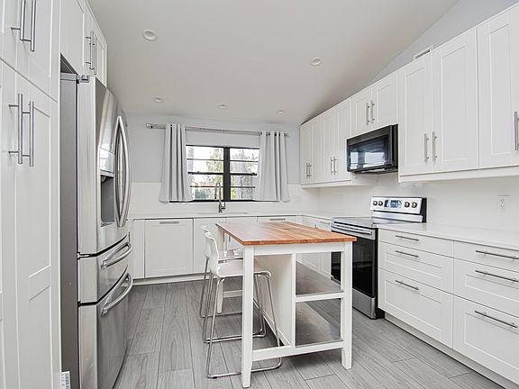 Contemporary finishesAir-conditioned garageWaterfall islandUpdated quartz-finished bathroomsQuartz countertopsPrivate fenced yardCustom cabinetry