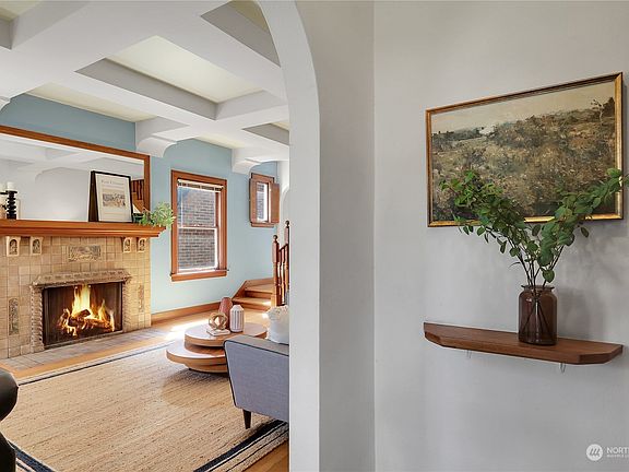 Enjoy a remarkable, 30's era home updated in systems, structure, and style near the heart of Ravenna. Featuring a formal entry, a gracious living room with period details including hardwood floors, arched doorways, gorgeous box beams, and a mantled fireplace, a terrific formal dining room complete with coffered ceilings and French doors to a terrific two-tiered deck & patio - perfect for indoor/outdoor entertaining. Also providing an updated kitchen with stainless appliances, marble countertops, custom cabinetry, tile backsplash, and a charming eating space, 3 good sized bedrooms and 2 updated bathrooms, a large family room with a 2nd fireplace (gas), a utility/laundry area, and an attached garage. Near the best of NE Seattle & light rail.