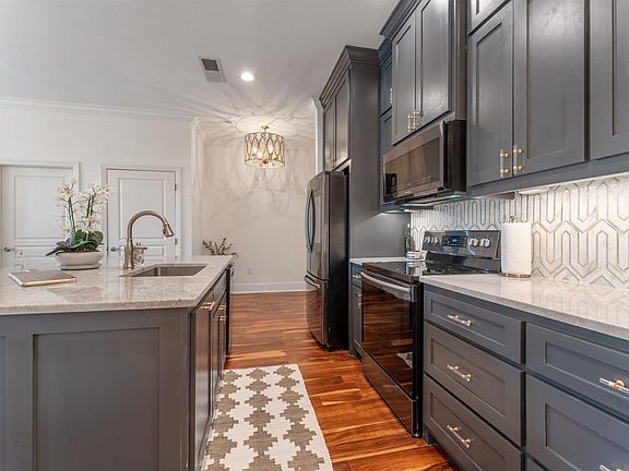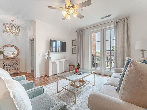 Location, location, location! Now available for lease a " this beautifully renovated 2-bedroom, 2-bathroom condo is located on the 3rd floor with a spacious balcony offering breathtaking views of Perkins Rowe. This upscale unit features high-end finishes throughout, including custom kitchen and bathroom cabinetry, elegant Taj Mahal quartz countertops, designer tile backsplash, and sleek stainless steel Samsung appliances. Thoughtful details like Gabby chandeliers, stylish bathroom mirrors, upgraded trim and baseboards, and modern designer paint tones make this home truly stand out. Enjoy rich walnut flooring throughout the main living areas and bedrooms (no carpet), with tile in the bathrooms and laundry area for easy maintenance. Located directly above Barnes & Noble, this unit boasts a prime position with no balcony overhead and perfect sunset views. The large bedrooms offer plenty of space for a sitting area or home office setup, each with expansive walk-in closets. Rent includes two assigned parking spots in the private, gated parking garage, and access to the residents-only pool and outdoor kitchen on the 2nd floor. Don't miss this rare opportunity to live in the heart of Perkins Rowe!