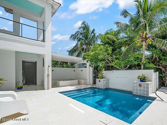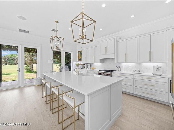 Prepare to relax and unwind in Maritime Hammock at Aquarina, the ONLY Melbourne Beach neighborhood that offers golf, tennis, fitness center, boat dock and launch, restaurant and beach access. This newly remodeled residence welcomes with a stunning courtyard entry with heated pool and firepit overlooking the 10th hole of the golf course. Inside the chef's kitchen shines with a Wolf gas range and Thermador refrigerator and an open flow to the family room where wraparound hurricane impact windows and doors flood the space with natural light and sweeping views. Take the stairs or private elevator to the 2 guest rooms-one en suite-and the bonus space, second full bath and laundry. The primary retreat is complete with its own office, a spa-like bath and balcony. Throughout the home you'll find thoughtful architectural details, designer light fixtures, wine refrigerators and balconies that capture the breezes. With a 3 car garage including a 220v EV charger, this home is turnkey.