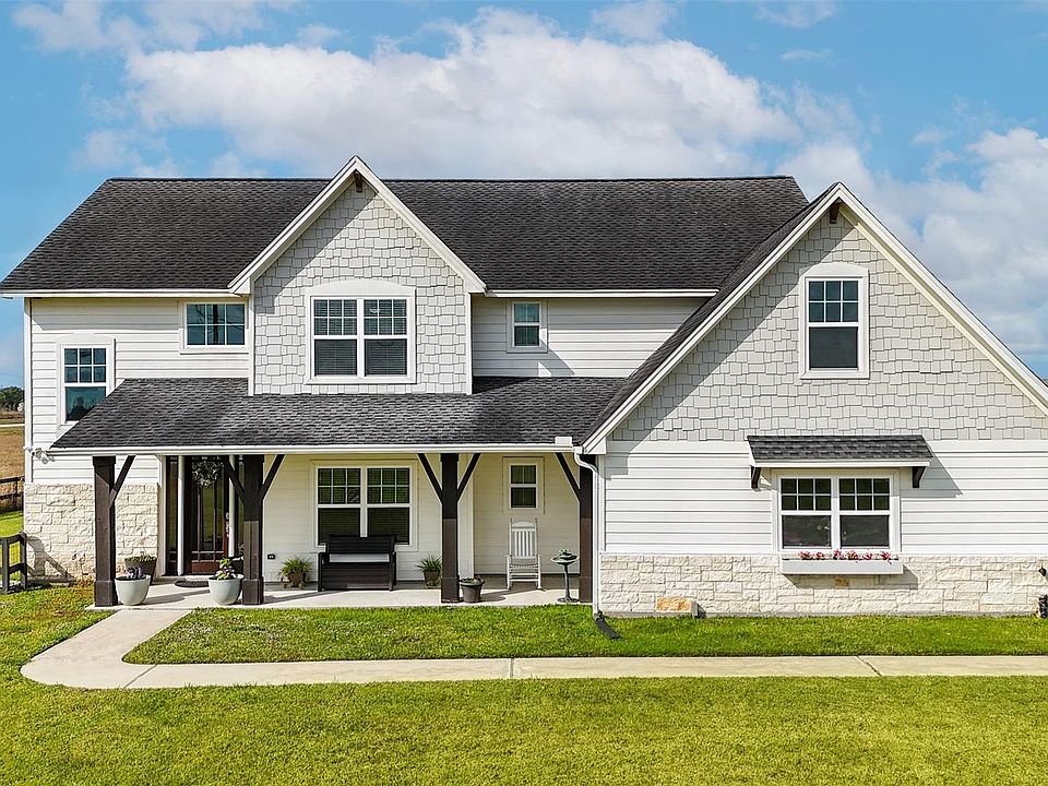 Welcome to 7707 Stratford Hall in peaceful Rosharon, TX. This 4-bedroom, 3.5-bath home sits on over 2 acres with a fully fenced backyard and 3-car garage, offering space, privacy, and country living. Just 10 minutes from Kroger and 10 minutes from Highway 288, 20 min to Highway 6, you’re close enough to shopping, dining, and the area’s rapidly growing amenities. Inside, a soaring two-story foyer opens to a living room with ceiling beams, an electric fireplace, and backyard views. The open kitchen features a large island, double ovens, stainless steel appliances, and a hidden walk-in pantry. You then flow into the dining area with direct access to your covered patio and backyard. A first-floor bedroom with built in Murphy bed and half bath adds versatility. Upstairs, secondary bedrooms share a Jack & Jill bath, with hall bath and laundry. The spacious primary suite has a spa-inspired bath with soaking tub, wraparound shower, dual vanities, and a massive walk-in closet.