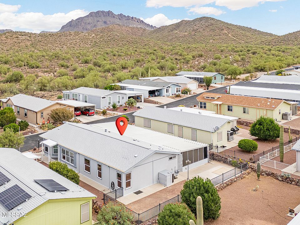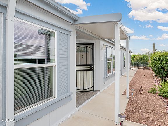 This 2 bed/2 bath with Den/Office is clean and move-in ready. New kitchen cabinets, counter-tops and newer appliances Washer/Dryer are included. Breakfast Nook and separate, open dining room. Den has a Murphy Bed for guests, ceiling fans, neutral laminate flooring throughout, large walk-in closet in primary bedroom, dual vanity, pocket doors, fenced-in backyard, grilling area and double carport. NEW exterior paint! Copper Crest is conveniently located just 15 minutes from downtown Tucson and offers beautiful mountain, desert and sunset/sunrise views! A vibrant 55+ Active Adult gated community with many activities and group events. Surrounded in part by BLM land for hiking. Amenities: Jr. Olympic-size pool, Shuffleboard, Bocce Ball, Exercise Rooms, Game Room, Library, & Rec Center and Activity Center. A "must see" home and community!