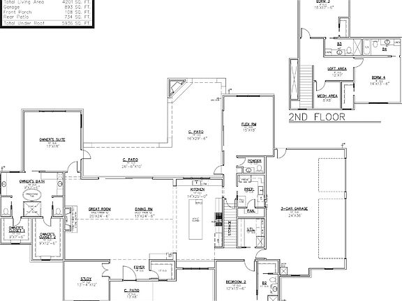A versatile first-floor flex room opens via a full wall of sliding glass doors to an expansive L-shaped patio, where a wood-burning fireplace creates a warm and inviting outdoor living area perfect for year-round gatherings.