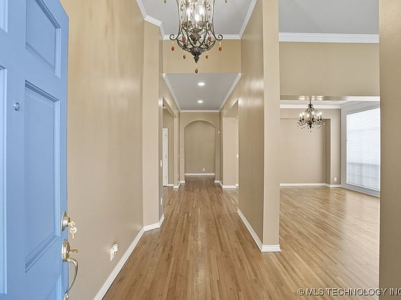 Nestled on a quiet cul-de-sac in the highly desirable Audubon Park neighborhood, this charming one story cottage-style patio home offers the perfect blend of comfort, character, and convenience—all within the award-winning Jenks School District.This thoughtfully designed, single-level home features 3 spacious bedrooms and 2 full baths, with generously sized living areas ideal for both relaxing and entertaining. Soaring 14’ ceilings and walls of windows flood the interior with natural light, beautifully showcasing the new wood floors and fresh interior paint throughout. The heart of the home—the kitchen—boasts new granite countertops & sink, a walk-in pantry, new microwave, and plenty of prep and storage space for the home chef. The primary suite is a true retreat, complete with a fabulous walk-in closet, a safe room, a new soaking tub, and a separate shower. Plus, it features its own dedicated HVAC unit for personalized comfort year-round. Additional highlights include a full-size staircase to the attic, offering abundant and easy-access storage in the garage rare and thoughtful touch. Enjoy the best of suburban living just minutes from shopping, dining, St. Francis South, and Hillcrest Hospital. This move-in-ready gem offers charm, space, and convenience in one inviting package.
