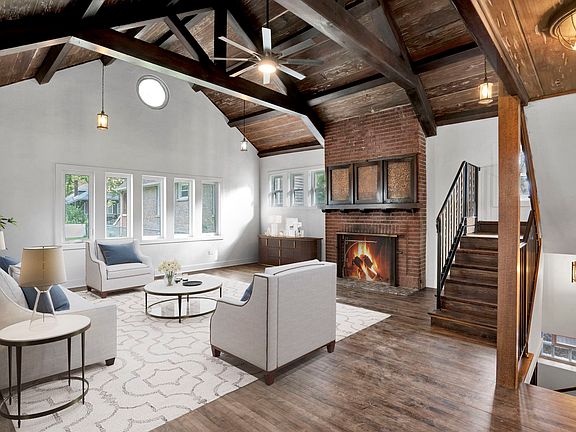Beautiful Spanish Themed Home. Nicely rehabbed with attention to detail. Master bedroom bath with two additional baths and a total of four bedrooms. Spacious kitchen and living room with wood burning fireplace and finished basement.