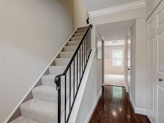 Brick front handsome interior townhome updated throughout. New stainless steel appliances in kitchen, ceramic tiles and granite countertops. New roof 2017, brand new deck 2018. Fenced back yard. Lower level with cozy rec room and fireplace. Laundry and lots of storage on lower level. New carpet 2018 and freshly painted. Master bedroom closet could be converted to another bathroom on upper floor. Great community with tot lot, neighborhood pool and tennis courts nearby. Easy commute to Fairfax County Parkway/I-395 or I-95. Giant and other shops closeby. Renovated and move in ready. 2 assigned spaces just in front of unit and plenty of visitor parking. Open 6/9, 2-4 pm