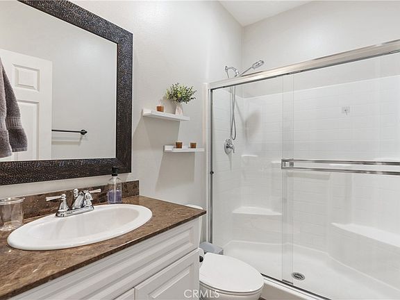The Cantata Collection is a captivating favorite at The Preserve. Large open floor plan combining living, dining and den areas with great flow and function. Large downstairs bedroom complete with private bathroom. Well positioned kitchen opens to the living space to maximize functionality and connectivity. Impressive features include an immense kitchen island with breakfast bar, quartz counters, pendent lights, pantry, custom backsplash, stainless steel appliances and tons of cabinet space. The seamless combination of quality materials and beautiful design elements express a casual approach to elegance that is distinctly Californian. Spacious master bedroom suite w/separate tub & shower, dual sink vanity and walk-in closet. Wide plank floors, crown molding, upgraded window casings and abundant natural light provide warmth and beauty. Huge loft/entertainment area - perfect for playtime, homework area or movie night. Upstairs laundry room, alarm system, surround sound speakers and upgraded exterior outlets for holiday lighting. This energy efficient home includes dual pane windows, louvered shutters, high efficiency appliances, Nest Thermostats, tankless water heater and owned Solar System. Large backyard with pavers, vinyl fencing, lawn & planter beds - great space for entertaining or just relaxing. Front and backyard sprinkler system. Community amenities include swimming pools, spas, fitness center, parks, tennis courts, movie theater, library and much more