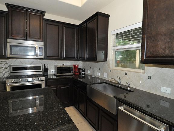 Upgraded freestanding condo with fenced backyard, Low maintenance, lock and leave community with mature trees. Wood flooring, Open floor plan with high ceilings and tons of natural light. Granite counters, subway tile backsplash, 42" cabinets, stainless steel appliances and sit at island in kitchen. Spacious master suite with double vanity and oversized walk in shower. Iron balusters at upstairs walkway with second living area. 2 car garage. Stone and hardiplank siding. Covered backyard patio. Great South location; only 10 miles to Downtown Austin and great access to ABIA. Enjoy nearby parks, shopping & dining