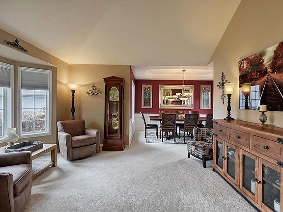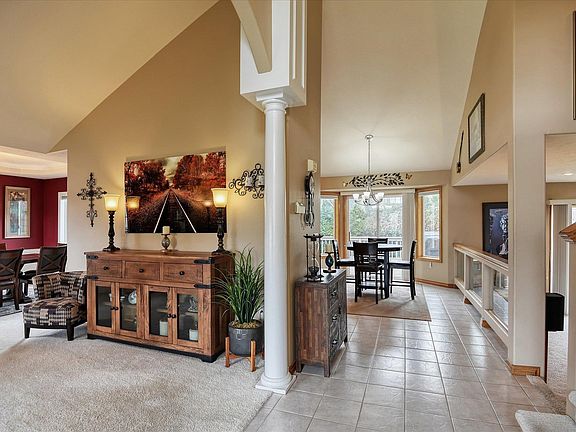 Style & substance! This 5 Mile entertainer's dream shows off stately columns, gorgeous tile work, cathedral ceilings & an inviting tuscan styled kitchen w/granite counters. Primary bedroom invites you to relax in the en suite complete w/shower & jetted tub. A large formal dining room provides room to enjoy meals together. Cozy up by the fireplace & watch snow fall outside the floor to ceiling windows or close the curtains & stream box office hits for an in-home theater experience. Downstairs you can practice your Masse' shot on the rec room pool table! Large partially fenced yard, sprinkler system = easy! 3 car garage means no scraping windows. Located in the Mead School District w/easy access to 5 mile prairie & Indian trail shopping & entertainment.