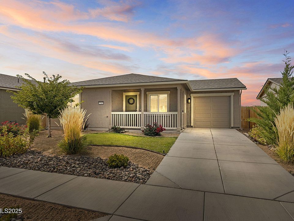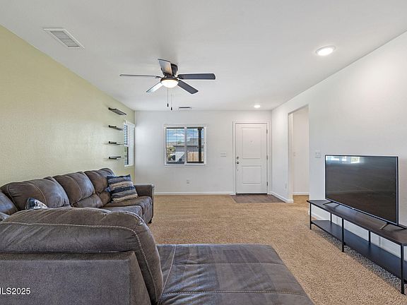 Immaculate newer NV Flats home tucked away in a quiet neighborhood within Lemon Valley, built in 2022 with quality upgrades throughout. This 3-bedroom, 2-bath residence features a bright open floor plan with a stylish kitchen showcasing granite slab counters, stainless steel appliances, and upgraded cabinetry. The spacious living area is complimented by quality laminate flooring, modern fixtures, and plenty of natural light. The primary suite provides a relaxing retreat, while the additional bedrooms offer flexibility for guests, work, or hobbies. Step outside to a thoughtfully landscaped yard, and wide-open mountain views. Backing to open land with easy access to trails and Swan Lake, this home combines comfort, style, and an unbeatable setting.