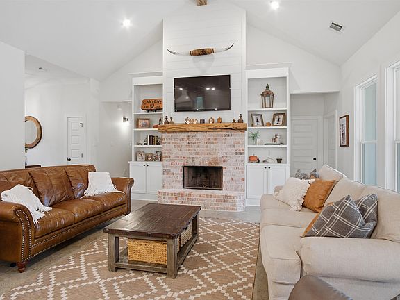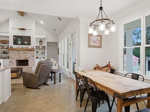 Escape the fast pace of city life and embrace the tranquility of country living. Take the easy, tree-lined drive to this retreat and enjoy Country Living at it's best! This charming retreat offers the perfect blend of peaceful seclusion and open space. Set on a generous 5.1 acres, there’s plenty of room for outdoor activities, gardening, or keeping animals—ideal for anyone who enjoys life outside. As you approach the home, you'll be welcomed by a front porch framed by four distinctive cypress posts. Inside, this inviting 4-bedroom, 2.5-bathroom home spans 2,216 sq. ft. of living space, with stained concrete floors throughout for easy maintenance and a modern, stylish feel. The spacious family room features a vaulted ceiling with decorative beam, a cozy wood-burning fireplace with a custom cypress mantle, and built-in bookcases. The space is brightened with canned lighting and a ceiling fan, creating the perfect setting for relaxation. The gourmet kitchen is a chef’s dream, complete with a granite-topped eat-at island, sleek granite countertops, a farmhouse sink, a wall oven, gas cooktop, exhaust hood, microwave, and a walk-in pantry. The adjoining dining area, offers an ideal space for family meals. The primary bedroom is a true retreat with a tray ceiling, ceiling fan, and recessed lighting. The en-suite bath is equally luxurious, featuring a double granite vanity, a garden tub for soaking, and a separate custom shower with bench seating. The three additional bedrooms are spacious and share a well-appointed full bath. An office space is also available, perfect for remote work or study. Step outside to the open patio and covered porch, ideal for outdoor entertaining or simply enjoying the peaceful surroundings. At the back of the property, you’ll find a 20x30 workshop with two lean-to's, offering ample storage or space for hobbies. Don’t miss out on this exceptional property—schedule your private tour today!