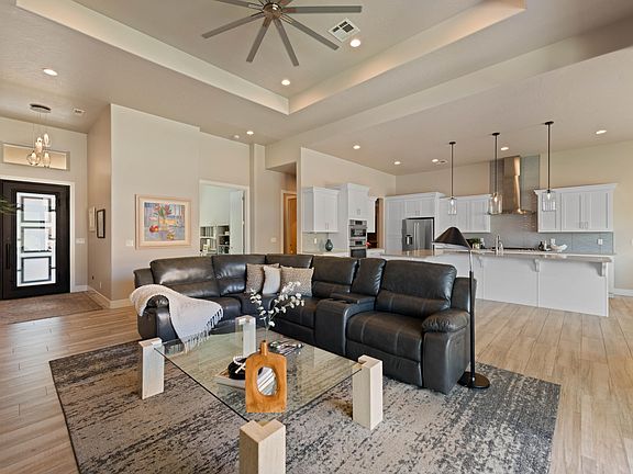 Located at the base of the iconic red cliffs of Ivins, this single-level home offers modern design and function. The 2,524 sq. ft. main home plus 339 sq. ft. detached casita create a layout ideal for both everyday living and hosting. The great room and kitchen flow into a split floor plan, with the primary suite privately set apart. Two guest bedrooms and a bath sit on the opposite side for added privacy. The detached casita provides flexible space for guests or an office. On .34 acres, the yard offers room to add a pool. Resort-style amenities at The Palisades include multiple pickleball courts, tennis, basketball, clubhouse, fitness center, large pool, hot tub, and outdoor kitchen—all in a secure gated setting minutes from Snow Canyon & Tuacahn.
